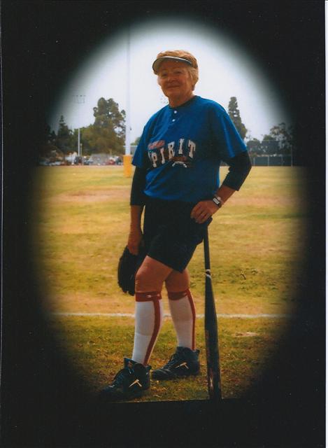 Gilda Ozuna writes, "Our most consistent player is Diane ... She is among the top three players on the team in RBI's, slugging average, and on-base percentage. She plays 2nd base for us and is Infield Captain. She is Co-captain of the team." "Diane continues to be a force with the Mighty Legends, as well as being the only female in a Men's league in Fallbrook, California. She brings more than mere talent to a team and an organization." |